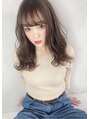 ゆるふわに巻いた無造作カールが髪質を柔らかく見せ大人かわいい雰囲気に♪今人気のシースルーバングでナチュラルな小顔の効果も!!カラーはアプリエでブリーチなしのミルクティーグレージュです!