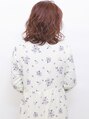 桜ピンクのボブレイヤースタイル。ふわっと動きのあるスタイルでフェミニンな女性らしさを引き出しつつ、落ち着いた桜ピンクカラーで、甘くなりすぎないオトナ女子スタイルに。