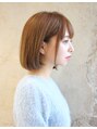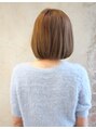 肩につかない長さ設定でハネにくいのはもちろんの事、首まわりをすっきりさせることで頭を小さく見せます。顔周りの髪の毛を作り顔を小さく見せる効果も狙っています。