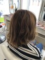 縮毛矯正をかけました。クセと毛先のパーマを自然なストレートに。ツヤも出て、パキッとなりすぎない丸みのあるシルエットに。