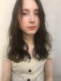 セミロングカット。毛先は少し重ためでトップにレイヤーを入れて動きをプラス◎前髪は長めにかきあげるようにカット◎デジタルパーマで、緩めのパーマをかけてラフウェーブでミックス巻きに◎カラー 透明感のある8トーンのグレージュで透明感を出します。