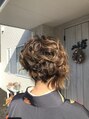 短めの髪で、編み込みとゆる巻きのゆるふわ アシメ