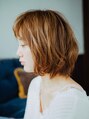 柔らかい髪質におすすめの甘めなボブスタイルです。カラーリングも少し明るめオレンジベージュ系で質感をやわらかく、さらに毛先だけカールをつけてふんわりするようにスタイリング。軽めなタイプのスタイリング剤がGOOD!!