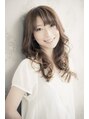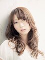 セミロング~ロングの定番ウェービィースタイル。耳下あたりから大きめウェーブパーマをかけています。カラーは赤みを抑えたベージュ系。