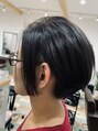 大人可愛いショートボブ。耳にかけてツーブロを見せてお洒落に。カラーはクールにミントブルーアッシュ。