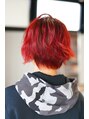 塩基性のトリートメントカラーで染めたビビットなボブスタイル