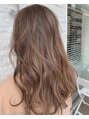 ベージュカラーをベースに全体にハイライトを入れてあります。ハイライトの間隔を少し通常よりも広げているのでナチュラルにハイライトが見える仕上がりになります☆カットは巻いた時に動きを出しやすいようにトップに少しレイヤーを入れています☆