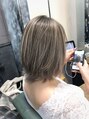 コントラスト差のあるハイライト☆ベースはグレー、ハイライトはグレージュ。ケアブリーチを使用しているので、最大94%ダメージ削減!施術の際にダメージにさせない!カラー剤の浸透率UP!