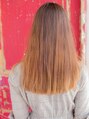 重ためのロングスタイル。 軽く見えるように毛先明るめのグラデーションカラーにしました。 バングも長めのシースルーバングで、透け感を!! ところどころに、全体の重めのフォルムに負けない軽さを表現しました!!
