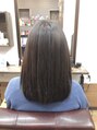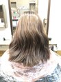 褪色してオレンジっぽく抜けないように赤味を消す緑(マット)と透明感の出るアッシュをバランス良く配合♪トリートメントでしっかりケアもしてる分ツヤ感もばっちり♪
