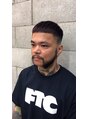 王道のクロップスタイル。高く刈り上げたスキンフェードと直線に揃えた前髪が特徴のスタイルです。デザイン性が高いので個性的な仕上がりになります。