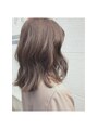 イエローベースの髪色にアッシュ系の色を入れています。アッシュでくすみ過ぎず柔らかさを出すのに、少しだけピンクを入れています。カットは巻いて鎖骨ぐらいになるようにカットしています。