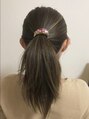 下ろしているとわかりにくいですが、結んだときに見えるようにハイライトを入れています!ハイライトの部分は一度ブリーチしてから全体にカラーしています!