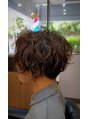 全体はボブスタイルイメージで少し男らしさをだすためにうしろを刈り上げてスタイルにメリハリをつけてハードパーマで男らしさとルーズな感じをアピールしました。