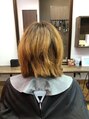 もみあげをツーブロックにして耳にかけたときにちらっと見える様♪ネープも刈って首回りもスッキリ♪カラーが透明感のあるカラーを配色した分柔らかい色とカットで締めてバランスよく調節♪