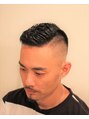 外国人によく見るクセ毛をグリースでなでつけるタイプのバーバースタイルで差をつける。刈上げは肌が透ける0.8mm以下のスキンフェードだが、これは更に0mmのシェーバーフェード。バックも高めのハイフェードがいい。