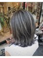 肩ぐらいの動きのある外ハネボブ。太めと細めのハイライトを全体に入れています。夏にオススメです!