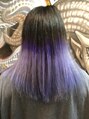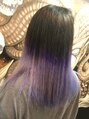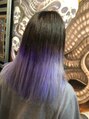 黒からホワイトパープルのグラデーション。中間と毛先で抜け具合が違ったので濃さを調整しています!