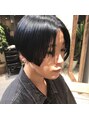 ラインをしっかり残したモードなショートスタイル、後ろは収まりを考えて刈り上げ!カラーはネイビーブルーをオン