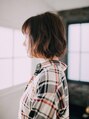 切りっぱなしボブ×しっかりウェーブなスタイル。毛先にはランダムなはね感がつくってあるので、朝のスタイリングの楽チンです!前髪はショートバングでカジュアルに、目の上流しバングならフェミニンな印象になります。