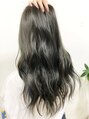 透明感たっぷりのグレージュです♪ポイントのブルーで、オシャレ度プラスのヘアスタイルです^ ^
