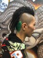 トップは特殊パーマ、中間から下はドレッド、襟足は1センチの長さに刈り、グリーンに!サイドは0.8mm刈りの唯一無二スタイル!