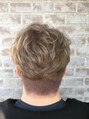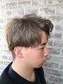 ツーブロックのアップバングでさわやかさを重視しました!色はブリーチをしてからのミルクティーカラーで彼の雰囲気にとてもマッチしていました!