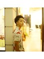 強めにかけたウェーブパーマとツーブロックでワイルドに。