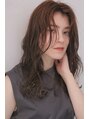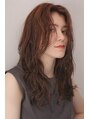 センターパート前髪にゆるめのカールロングヘア。スタイリングはウエット感を出してツヤ感を。カラーはオレンジベージュで夏っぽく仕上げました**