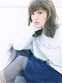 ふわっとやわらかく透明感のある大人かわいいミディアムスタイル。厚めバングと顔周りに動きをつけて小顔に見せるがオススメ♪