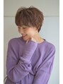 9~10レベルのアッシュベージュでマッシュショートにカット。さらに、トップにふんわり動きをつけるため、ポイントパーマをプラス。やわらかで、透明感のあるショートスタイル。