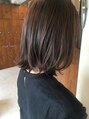 お客様スタイル。肩につく、切りっぱなし外ハネボブ。トップにレイヤーを入れて束感を出し、隙間感のある質感になります。カラーは、アッシュベージュで柔らかい色味に。