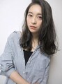 黒髪ではなく《ダークグレー》のカラーがほんのり柔らかくみせてくれます!!ふんわり立ち上げた前髪とゆらり揺れる毛先のカールが大人女性にぴったりです◎サラッとひとつにまとめたりアレンジもしやすい長さです☆
