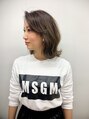 肩にあたるレングスも外ハネでおしゃれにチェンジ。内巻きに入るようなカットの仕方でもスタイリングによって毛先を遊ばせることも可能!!ハイライトで動きを出しています☆