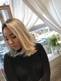 肩下のロブ。重めの毛先を身体のラインに合わせて動かしています。