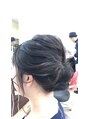 派手にならないように低めにまとめて、くずしてゆるふわ感を。