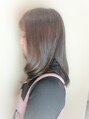パーソナルカラーを熟知した独自配合のカラーでクリーミーな透明感と艶感を演出♪前髪は流し前髪でもフルバングでも◎エアリーでオフィスシーンでも◎個性的に無造作に仕上げてもOK