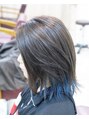 - アッシュグレーの7トーンカラーにインナーでブルーを入れて少しクールに!