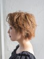 ショート×パーマでワンランクおしゃれなスタイルに!ベースはショートボブで長さを残しているので、ボーイッシュになりすぎずフェミニンな印象に。明るめミルクティーカラーで透明感をプラス。伸ばしかけのかたにもおすすめなスタイルです☆