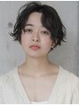 やや前下がりのショートボブをベースに大き目のカールでしっかりパーマ感を出しています
