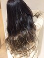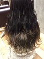 バレイヤージュでグラデーションカラーに。透明感のあるスモーキー系ヘアカラー