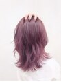ピンクやパープル系が流行っていますが、ハイライトなどで元の地毛が明るいと鮮やかなピンクパープル系の色にすることもできます*