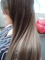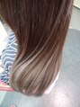 イルミナカラーで暗いグレー系で染めてエクステでバレイヤージュです。地毛とのバランスがとても大切なのでエクステを付ける位置が重要です。エクステは多めがお勧めです。