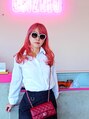 ベースは全頭2回ブリーチ、オンカラーは塩基性カラーでホワイトを多めのベリーピンク。このスタイルのような明るさをキープし、鮮やかなピンクを演出する場合は、2回以上のブリーチは必須になります。