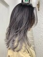 バレイヤージュの後に全体ブリーチし、ミルキーグレージュをon!中国のカリスマ美容師、馮流フリックテクニックを駆使してすいてある毛でも均等にハイライトがはいります。