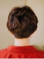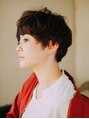 パッツン気味にそろえたバングが印象的なナチュラルマッシュのショートスタイル。バングはあえてカールをつけすぎず自然におろしてマッシュのラインをいかしています。