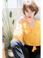 顔周りにかかる毛束のバランスを大切に、ショートでも女性らしく上品に。カジュアルにもクラシカルにも似合う自由なアンニュイショート。