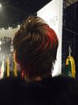 メンズカジュアルストリート系ポイントカラー黒髪スカーレット