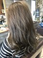 イルミナカラーで透明感カラー。もともとオレンジになりやすいのでカーキアッシュカラーでオレンジを消しています。