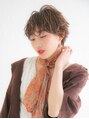 ウェットスタイルでオレンジ系カラーが映える、ショートのニュアンスパーマスタイル。大きなS字カールと外ハネで今っぽく。【EARTH●●店】